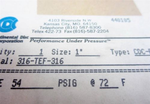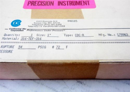 Continental Disc 44-0105 1" Rupture Disc 52 PSIG @ 72° F CDC-R 316-TEF-316 Mfg.
