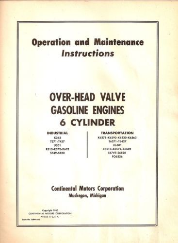 WISCONSIN ENGINE OVERHAUL INSTRUCTION 4 CYLINDER V-460D VINTAGE 1963