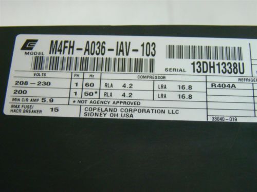 Copeland Hermetic Condensing Unit 115V 1/2HP M4CL-H036-IAA-121 AFE13C4E-IAA-103