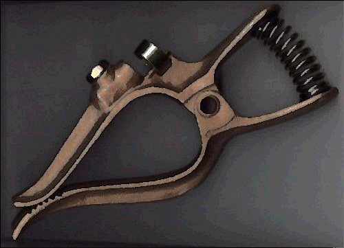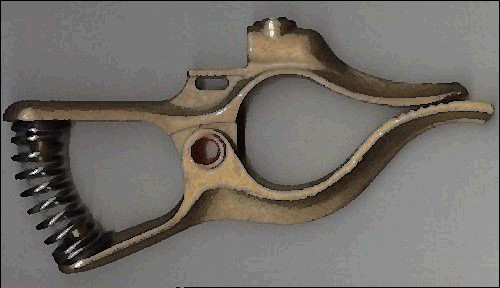 Here is a vintage Tweco 300 amp arc-welding ground clamp.  My local Air-Gas sells this clamp for $50 new, plus tax, and the new ones don't say where they're made.  This one was made in Wichita, Kan., U.S.A., as is cast on the body itself.