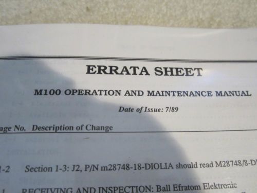 COPY MANUAL EFRATOM M-100 RUBIDIUM FREQUENCY STANDARD OSCILLATOR #2