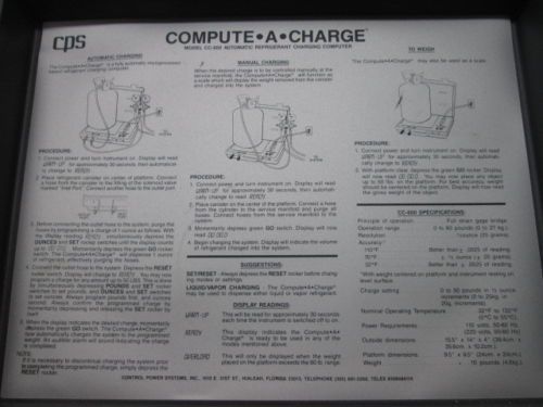 COMPUTE A CHARGE BY CONTROL POWER SYSTEMS INC (CPS) FREON SCALES MODEL CC-600