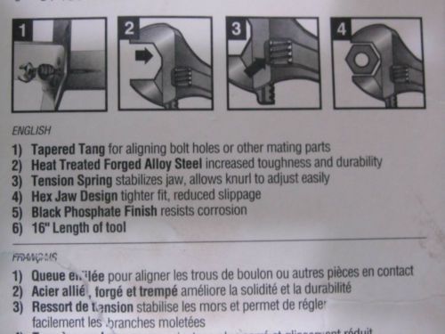 CHALLENGER by PROTO 4012 TOOL 12" ADJUSTABLE CRESCENT WRENCH 4 farm truck use