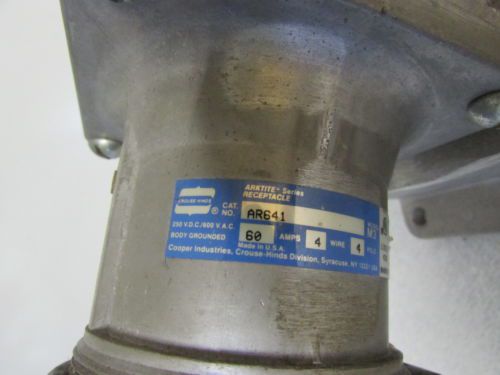 | “Excellent New oldstock Crouse-Hinds Arktite Series Recepticale Model 3M Cat. No AR641 60 Amp 4 Wire 4 pole with AJ56 box” |
