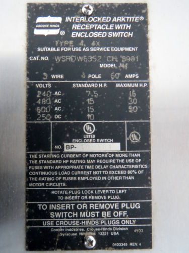 HUBBELL HBL13R92D NEW IN BOX 30A 600V MOTOR DISC SEE PICS #A21