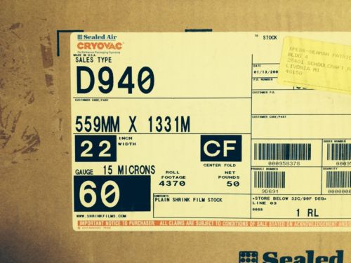 Cryovac Uline Heat Shrink Wrap Film Sealed Air 60 Ga 22" 8750 Ft Polyolefin