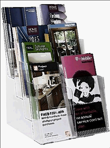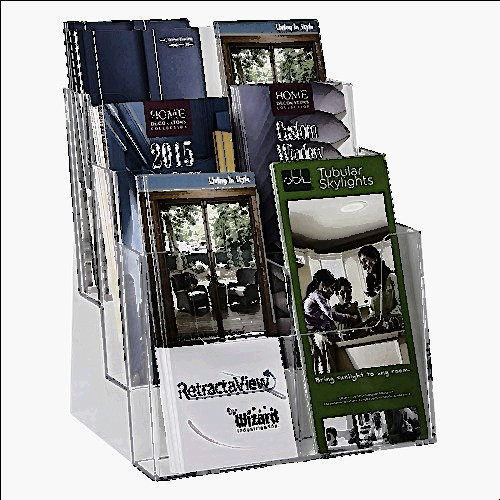 Clear-Ad - LHF-S83 - Acrylic 3 Tier Brochure Holder Organizer - Table Top or Wall Mount - 8.5 x 11 (Pack of 6) Line Size: 6 Our Clear-Ad branded multiple brochure holder tier series is the continuation of letter size acrylic brochure holder. This brochure holder 3 tier is a convertible countertop or wall mount acrylic brochure holder. This brochure holder can be used for full sheet literature or trifold material.