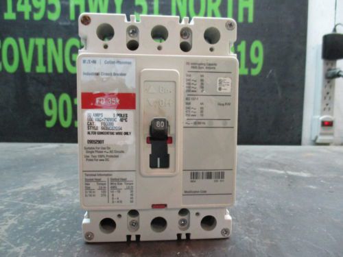 CUTLER-HAMMER 80AMP INDUSTRIAL CIRCUIT BREAKER CAT#FD3080 600VAC 3:P NIB