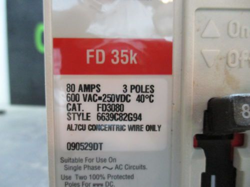 CUTLER-HAMMER 80AMP INDUSTRIAL CIRCUIT BREAKER CAT#FD3080 600VAC #826955 3:P NIB