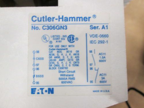 CUTLER HAMMER A10BN0 SIZE 0 120 V 18 A SERIES A1 CONTACTOR WITH C306DN3 OVERLOAD