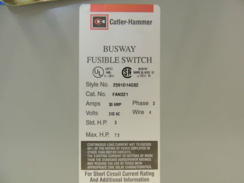 Cutler-Hammer 30 Amp NEMA 1 Fused Bus Plug (DIS1674)