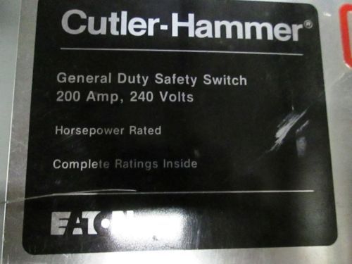 EATON Cutler Hammer Safety Disconnect TYPE 3R CAT# DG325NRK 400A 240V Fused CH