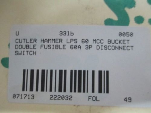 CUTLER HAMMER MCC BUCKET DOUBLE FUSIBLE 60A 3P 600V DISCONNECT SWITCH D222229