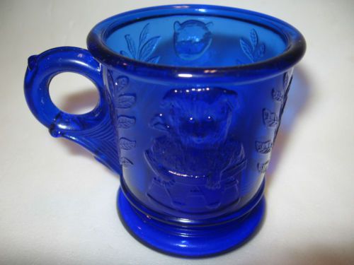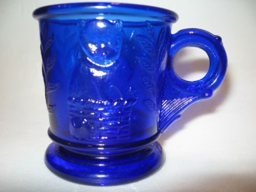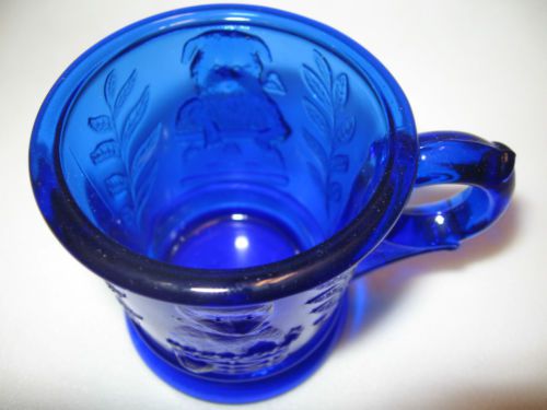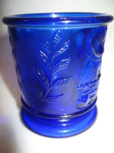cobalt blue carnival glass scottie dog salt cellar on nest basket dip iridescent