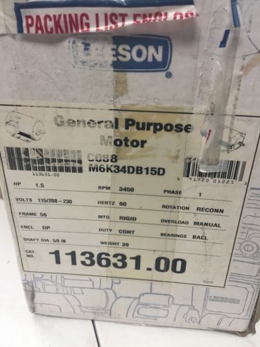 LEESON C6C17FK4E 110905.00 AC 3/4HP 115/230V-AC 1725RPM D56C 1PH MOTOR D291821
