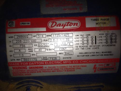 Dayton 3M955 Direct Drive Blower Motor 1/3 Hp 1075 RPM 115 Volts
