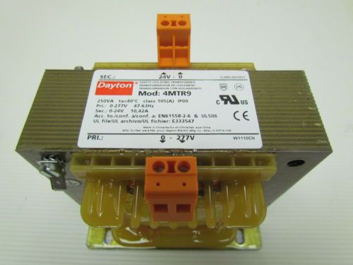 Dayton 4mtu1 Isolating Transformer IN 120-240V out 24V Rated Power 500VA