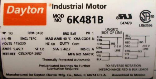 NEW 1/150 HP DAYTON FAN AND BLOWER MOTOR MODEL 4M070D