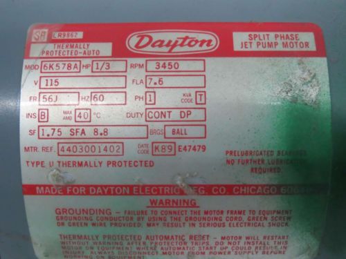 Dayton Split Phase Motor 5K586B 1/3HP 150V