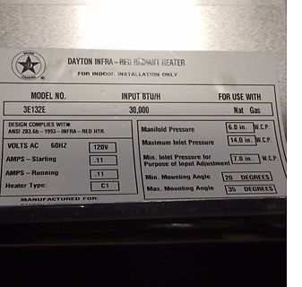 Modine Infrared Heater 60000 Btu