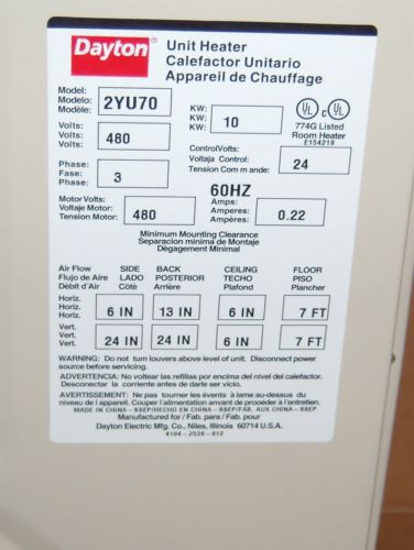 DAYTON WALL HEATER COMMERCIAL , Tmpr Prf, 240/277V