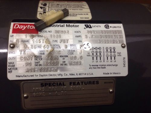 AOSmith Condenser Fan Motor RPM1140 1.5 HP 460/200-230 V Polyphase #7-181667-03