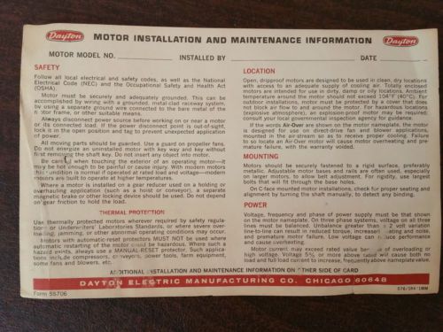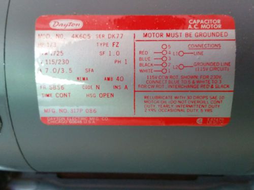 Vintage Dayton Split Phase A.C. Motor- 1/3 HP, Model # 5K909B- Never used!