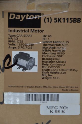 Dayton Electric Split Phase Motor Model 5K597b HP 1/2