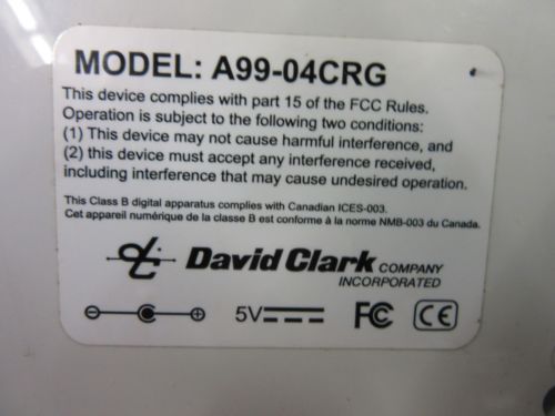 DC DAVID CLARK HEADPHONES HEADSET WIRELESS BELT STATION U9910-BSW 40992G-01 USED