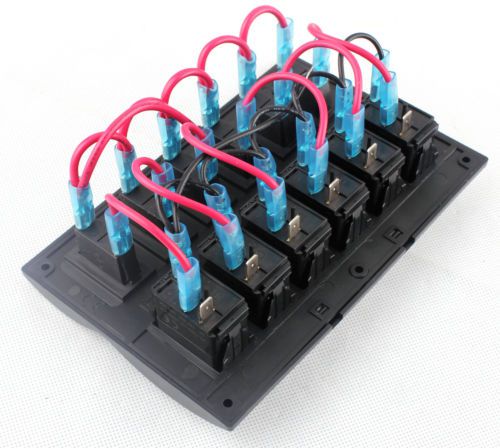 6 Gang DC 12V LED Rocker Car Boat Switch Panel Inbuilt Auto Fuses For Car Boat