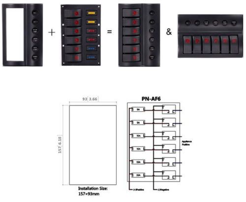 6 Gang Car Boat Rocker Switch Panel DC12V With LED Indicator Overload Protected