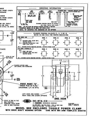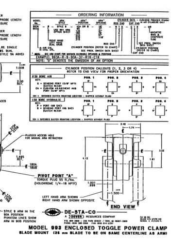 DE-STA-CO A895B-23-22-R1000-C100K Pneumatic Clamp, With Arm, No Sensor, Used