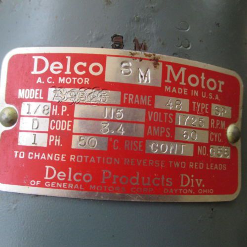 Vintage Bendix/AC Delco General Motors 14080 1/4 HP AC Motor