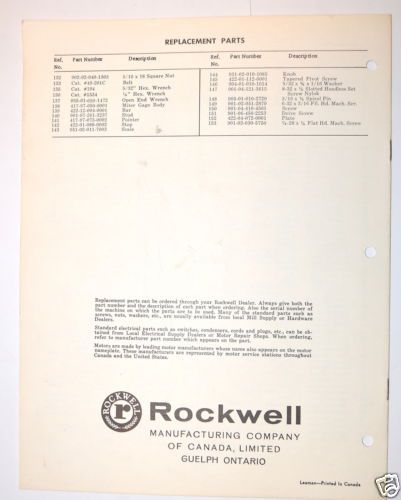 ROCKWELL Model 10 & 12 Radial Arm Saws Owners Instructions & Parts Manual 1058