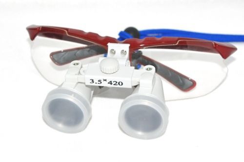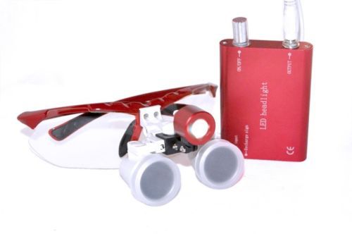 Medical Binocular Loupe3.5X 420mmOptical Glass+LED Headlight RED From USA