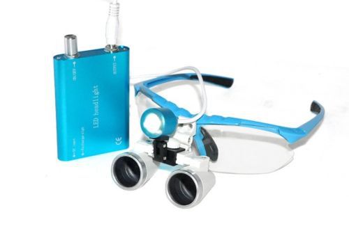 US Warehouse Medical Binocular Loupe3.5X 420mmOptical Glass+LED Headlight Blue