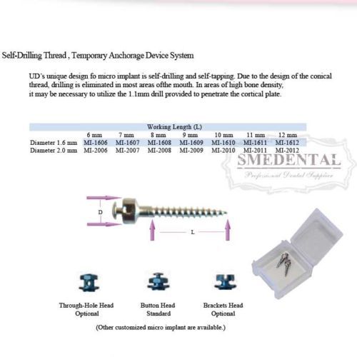 | Model | Dental Micro Implant Screws Self-Drilling Thread | ||