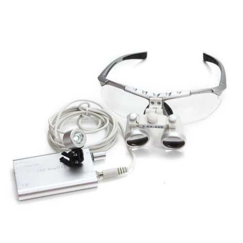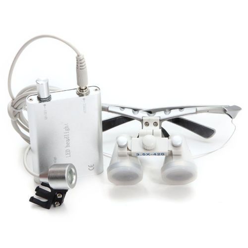 USA Ship!! Red Dental Loupes 3.5X 420mm Surgical Binocular LED Head Light Lamp