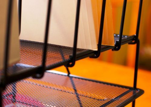 Vintage GLOBE WERNICKE Industrial Mid-Century Metal Paper Tray Desk Organizer