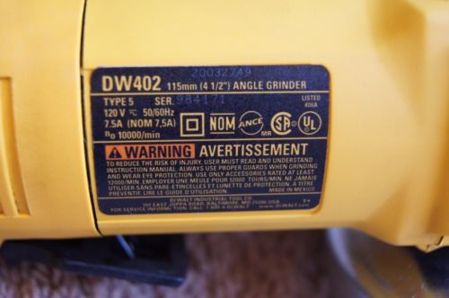 | Seller Notes | “Used and and has some cosmetic wear.DeWalt DW402 Corded Electric 7.5A Heavy Duty Small Angle 1 1/2" Grinder Paddle Switch” |