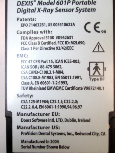 Dexis 601P Digital Dental X-Ray/ Radiograph Sensor w/ Dexbox Docking Station