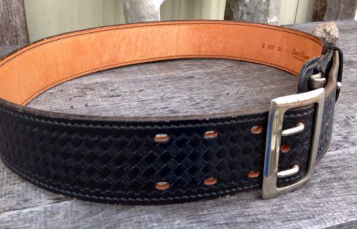 BLACK BASKETWEAVE LEATHER POLICE DUTY BELT # 1021U W/O CLASP SZ 34