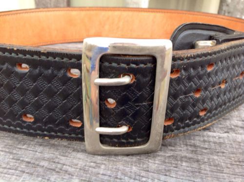 Vintage Basketweave Police Duty Leather Belt Size 36 + Buckle *RARE*
