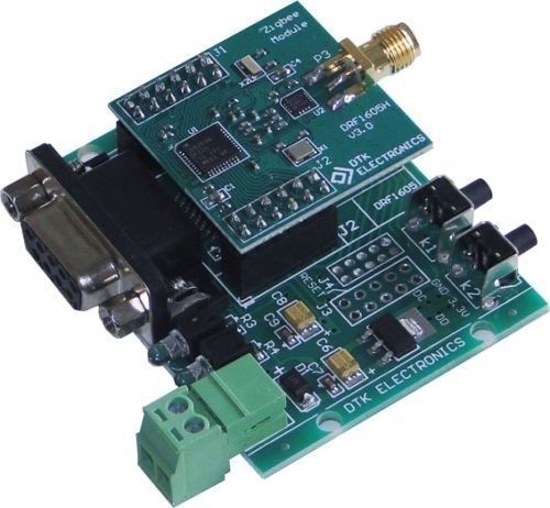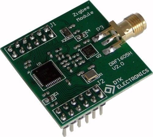 DRF1605H Zigbee Module 1.6km Transfer CC2530 Wireless Module UART to Zigbee Description 100% Brand new The Advantage: 1, NetWork creation automatically: after power on, the Zigbee network can create automatically and the net can repair by itself. 2, Data transmitter simply: the are two different methods to send data, first is clarity transceive, second is point to point. 3, Simply used: customer can use it as UART cable and ignore ZigBee protocol. 4, UART Interface (TX & RX) to Zigbee 5, Built-in RS485 direction control 6, High power module,the distance can reach 1600M 7, Customer can use it with ZigBee USB mother board as follow 8, As the pin distance is 2.54mm or 2.54*n, thus it can connector to versatile board 9, Any MCU can connect to this module, just need MCU has UART ( TX & RX @ 3.3V ). Electronic Parameters: Input voltage Standard : DC3.3V Range: DC 2.6-3.6V Temperature range: -40C~85C Serial port rate: 38400bps(Default), 9600bps, 19200bps, 38400bps, 57600bps, 115200bps Radio frequency: 2.4G(2460MHz), Can changed(2405MHz - 2480MHz,Step:5MHz) Wireless protocol: Zigbee2007 Distance Visual distance: 1600 Meters Working current Sending: 110mA(Max) 50mA(Average) Receiving:35mA(Max) Standby: 40MA(Max) Users can customize the low-power module (standard module does not have this feature) Receiver sensitivity: -110 dBm Chip: CC2530F256,256KFLASH Configurable Point: Can be configured as Coordinator,Router Default:Router,PAN ID=0x199B,Radio Channel=22(2460MHz) Interface UART 3.3V (TX & RX) Built-in RS485 direction control, RS485 chip can directly drive RS232 chip can directly drive Direct USB to RS232 chip driver Mechanical parameters: (Top View,Uint:mm) Internal Structure and the Pin: (Top View ) Appearance: Connections : DRF1605H fully compatible with DRF1605 pin, can be connected to USB baseboard, RS485 baseboard. Customers needn't to change any design, can be used directly DRF1605H replace DRF1605. Zigbee Module's Network Zigbee network node has three network forms: Coordinator, Router, End Device. Coordinator: used to create a Zigbee network, when a node joins, the assigned address to the child node, Coordinator usually defined as a device does not power down, no low-power state for the module DRF1601, DRF1602, DRF1605. Each Zigbee network needs and only needs a Coordinator, different networks PAN ID (network ID) should not, if there is room for two in the same Coordinator, PAN ID if they are the same as the original, and the latter on the power of the Coordinator of PAN ID will automatically add one to avoid PAN ID conflict. Router: responsible for forwarding data packets to find the most suitable routing path, when a node is added, the node can assign an address; Router is usually defined as a power supply device, not a low power state for the module DRF1601, DRF1602, DRF1605. Each Zigbee network may require more than one Router, Router can each send and receive data can also forward data when a network all by the Coordinator (1 unit) and Router (more) form, this network is the real MESH network (network like network), each node sends all the data is automatically routed to reach the target node. When a ZigBee network formation (MESH network): Router to obtain the address (Short Address) is constant, can be used as point to point data transmission using the address; Even if power-down Coordinator, Router still maintaining the network, so between the Router and the Router is still able to communicate; Coordinator power-down even when there are new nodes added, still able to get through the existing Router address, join the network; Router is usually referred to as FFD (Full Function Device) (all-nodes) Network nodes: 1 Coordinator + n Router, supports a total of 9331 nodes: Zigbee MESH (mesh) is characterized by 1, the network consists of a Coordinator + n Router 2, each node both send and receive data, can also act as a router, forwarding data 3, the network can be any communication between nodes, even if all other nodes off (including the Coordinator), these two nodes can communicate 4, each node within the network (Coordinator, Router) are maintained with the network function, as long as one node is running, the new node can join the network by this node 5, node joins, the automatic distribution of the Zigbee network address, and keep the same address 6, route calculation is automatic forwarding of data does not depend so join the network node through which Zigbee network networking and network testing Basic concepts: Zigbee module has two types of nodes, namely Coordinator (master) and Router (from node) Each Zigbee network consists of a Coordinator (master) and N-Router (from node) With a Zigbee network, all nodes must have the same channel and PAN ID (network ID) Module factory default configuration: Module factory all of the node type Router (from node), PAN ID = 0x199B, channels = 22 (2460MHz) First use process: 1. Choose one module and change it to Coordinator (using the configuration software), than restart it 2. Change the Coordinator's PAN ID to your set of values (such as 0x1234) (range: 0x0001 - 0xFF00), mainly to prevent conflicts with the default values (default is 0x199B), than power off it. 3. Change the Router's PAN ID to the same value (just look for the network with the same PAN ID) (or to 0xFFFF, automatically search for any network), than power off it. 4. Turn on the Coordinator first (a long bright light, a light flash) 5. Than open the other Router's power supply (two lights flash), about 3 seconds, can automatically join the network (two long bright light) Change the network: 1, if you want the Router to join a new network, change the Router's PAN ID to new (same as Coordinator or 0xFFFF), then restart it, it can join new network automatically. 2, Do not try to be a Coordinator to join an existing network, even if you can join the network is not strong, Coordinator may withdraw from power-down after reboot network; 3, when a network is running properly, do no