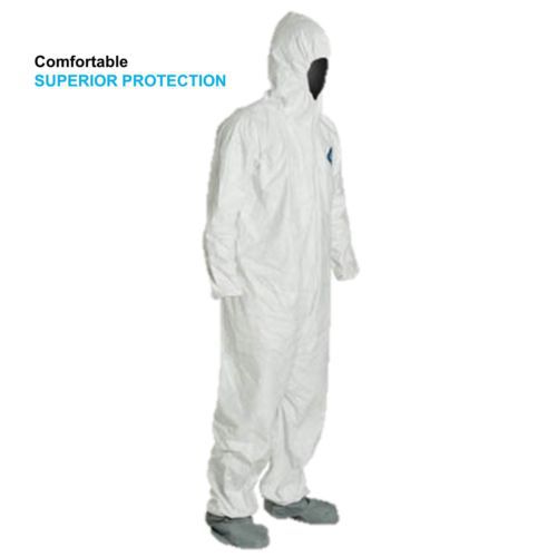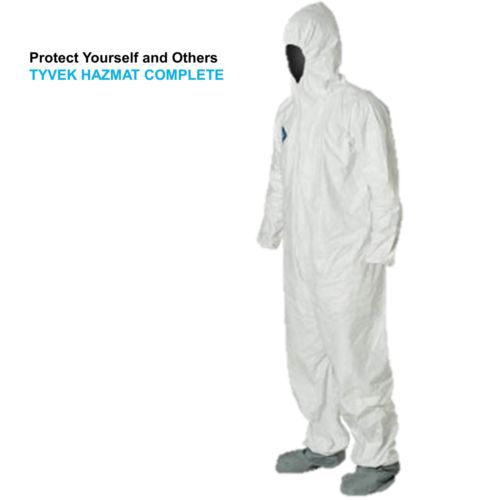 Chemical Protection Tyvek Hooded Coveralls w/Shoe Covers, Nitrile Gloves & Mask