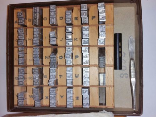 Kingsley Stamp Machine Letterpress Type Letters in Wood Box Brush Caps 18pt