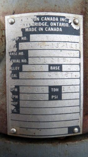 DURIRON DURCO 3 X 1-1/2 - 13 IN 70GPM STAINLESS CENTRIFUGAL PUMP B460365
