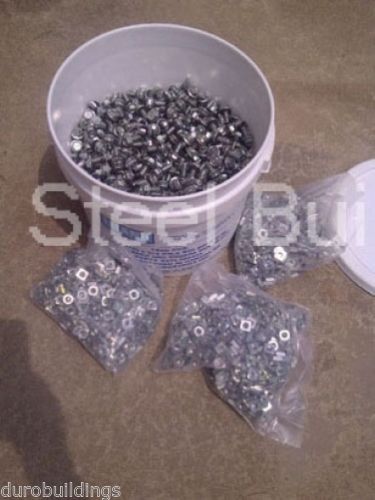 Package of 2000-5/16" by 1" Replacement Bolts Arch Building Grain Bin Bolts Nuts Washer Free Shipping in the Lower 48 States Listing Details 1500 Hour Corrosion Test Bolts. 5/16" x 1". 1000 Bolts/Nylon Washers/Lock Nuts Per Bag. We also carry insulation and accessories for all our buildings. Check out our store for more information. If this Listing is not EXACTLY what You Require, please CALL US FOR A PERSONAL EBAY LISTING FOR YOUR EXACT SIZE! Have You Seen Our Steel Buildings? High Quality I-Beam Buildings by Duro Steel Highly versatile and perfect for any commercial industrial, farm, or consumer application. Each building is custom designed to your specification, and still accommodates your county wind and snow load. It will meet or exceed industry standards and regional requirements. Our steel commercial buildings, with few width limitations, allow you to erect huge metal buildings with clear spans widths of 100 to 200+feet (30-60+ meters). An excellent choice of American-made structures: from airplane hangars to mini-storage type buildings with multiple interior units with individual exterior doors. High Quality Arch Buildings by Duro Steel Duro Span hut is defined as any self-supporting structure, usually in an "arch" or curved shape. There are no interior posts, trusses or support beams of any kind. The exterior sheeting is the building. To assemble an Duro Span building, you first layout each individual section of the arch on the ground (each section is usually no bigger then 8-12 feet long (3-4 meters). You bolt all the sections together to make the first arch. You pull up the assembled arch and attach it to its foundation. Each additional section is assembled in the same manor and attached to the other standing arches. Each arch is usually about 2 feet wide (1/2 meter). To make the building longer, just add more arches. There is no limit as to how long this building can be. End walls may be provided by the manufacturer, or you can build your own. Unique to the Duro Span arch type steel building is you can leave one or both ends completely open without losing the integrity of the structure. For more information about our complete line of steel buildings, please Visit our eBay Store! Take the Time to REALLY Compare Us! Features Duro Beam "Competition" We don't just sell buildings, we engineer, design and detail your building.Our in house Engineers are available at all times to make sure you get just the building you wanted. Standard Included Additional Cost Or Not Available We are all humans and errors can come up, however our expert technicians and customer service specialist are available at all times to make things right. Standard Included Additional Cost Or Not Available All components including sheeting, I-beams, accessories and even doors are manufactured in house. Standard Included Additional Cost Or Not Available Our Pre-Cut, Pre-Punched and Pre-Drilled Parts allow quick and easy assembly. No drilling or welding required. Standard Included Additional Cost Or Not Available Our Long Life Hex Flange Bolts, Hex Nuts, Washers, Screws & Fasteners with Matching Finish ensure tightness and weather protection for the entire building. Standard Included Additional Cost Or Not Available All Duro Steel Buildings come with cable bracing which will add strength and rigidity. Standard Included Additional Cost Or Not Available All Framed Openings come with Jamb & Header cover trim giving your building a more attractive finish. Standard Included Additional Cost Or Not Available Minimum 26 GA Steel to keep you and your belongings safe. Standard Included Additional Cost Or Not Available About Duro Steel - Important Additional Information The name Duro Steel is recognized around the world to be a leader in pre-fabricated and Industrial Steel Buildings. Our factory has been manufacturing and distributing Steel Buildings for over 20 years! The demand for environmentally-friendly construction products and practices, or green buildings, has accelerated in recent years. Duro Steel Buildings is well aware of this demand and offers the highest quality 100% recyclable steel buildings. We Accept Checks, Major Credit Cards and PayPal. Our Offices are in the same Location since July of 1998 Duro Steel is proud to provide quality products with Customer Service Second to None! With our eBay program, it's now possible to purchase Building's direct through Duro Steel with Superior Technical Support, and Exceptional Customer Service for all your need's, and requirements! Duro Steel feels you should know the company you are doing business with prior to spending your hard earned money. We ask that you take a moment to look up any company prior to making a decision to purchase. We offer a guarantee on all our products, so Bid on Auctions and or Buy it now with confidence. Duro Buildings is a trusted brand name and one of the largest Full Service Steel Building Providers on the Internet. We are also verified PayPal™ and eBay™ merchant since 2001. See our about us page. PRICE MATCH GUARANTEE: If you find this item less expensive anywhere on the Internet, let us know and we will match or beat that price when Comparing Apples to Apples! Some of our Special Priced Building Ads Include FREE SHIPPING: FREE Ground shipping is available on certain items within the United States; excluding Hawaii and Alaska. When shipping is not included in the United States & International customers, please contact us for shipping quotes. SUPERIOR CUSTOMER SERVICE: We take pride in providing prompt and courteous customer service. Our goal is to make your customer and shopping experience as easy and convenient as possible. If you have any questions or comments before or after your purchase, please don't hesitate to contact us. Duro Steel Phone Numbers SHIPPING IS INCLUDED ON THIS ITEM IN THE LOWER 48 STATES. Please call Toll Free 1.800.445.0412 for International shipping rates. You can also contact us by email at ebay@durospan.net All