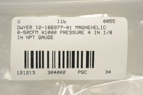 DWYER 12-166978-01 MAGNEHELIC 0-60CFM X1000 PRESSURE 4IN 1/8IN NPT GAUGE B303999