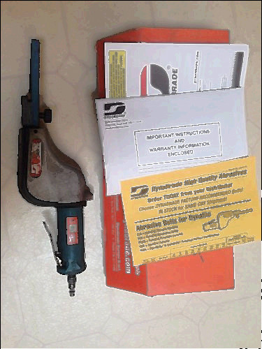 *EXCELLENT* Dynabrade Dynafile 14000 Air Belt Sander 01197 This tool is in excellent condition and is very clean, but has a couple personal engraving as seen in photo#9. Tested and works perfectly. No extra belts are included.